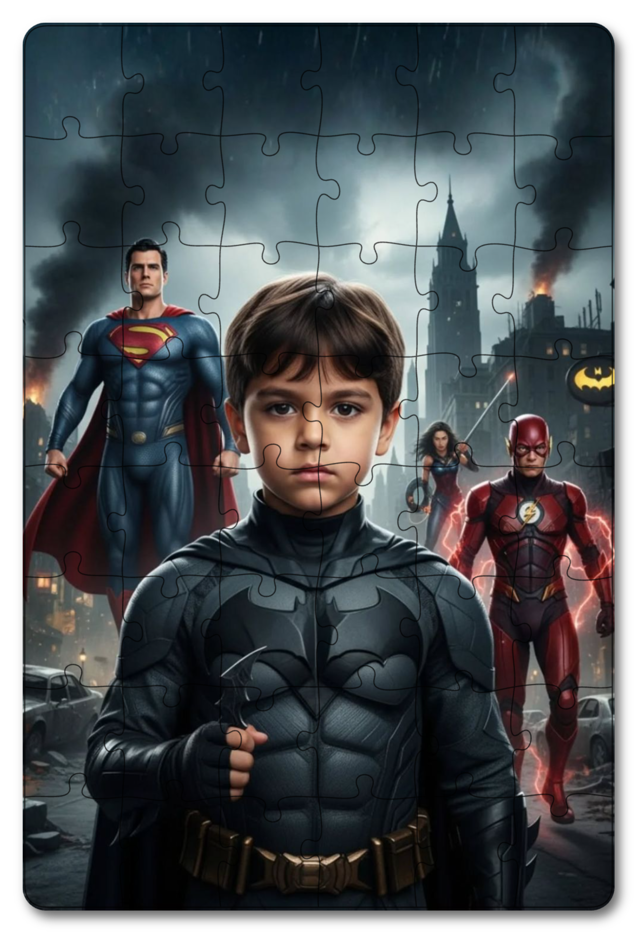 Një natë e errët kishte rënë mbi qytet, dhe djaloshi i vogël, Ardi, kishte veshur kostumin e tij të Batman-it. Ai ishte shumë i emocionuar të ishte pjesë e ekipit të heronjve, që përfshinte Superman-in, Flash dhe Wonder Woman. "Së bashku, do ta shpëtojmë qytetin!" tha Ardi me plot besim.