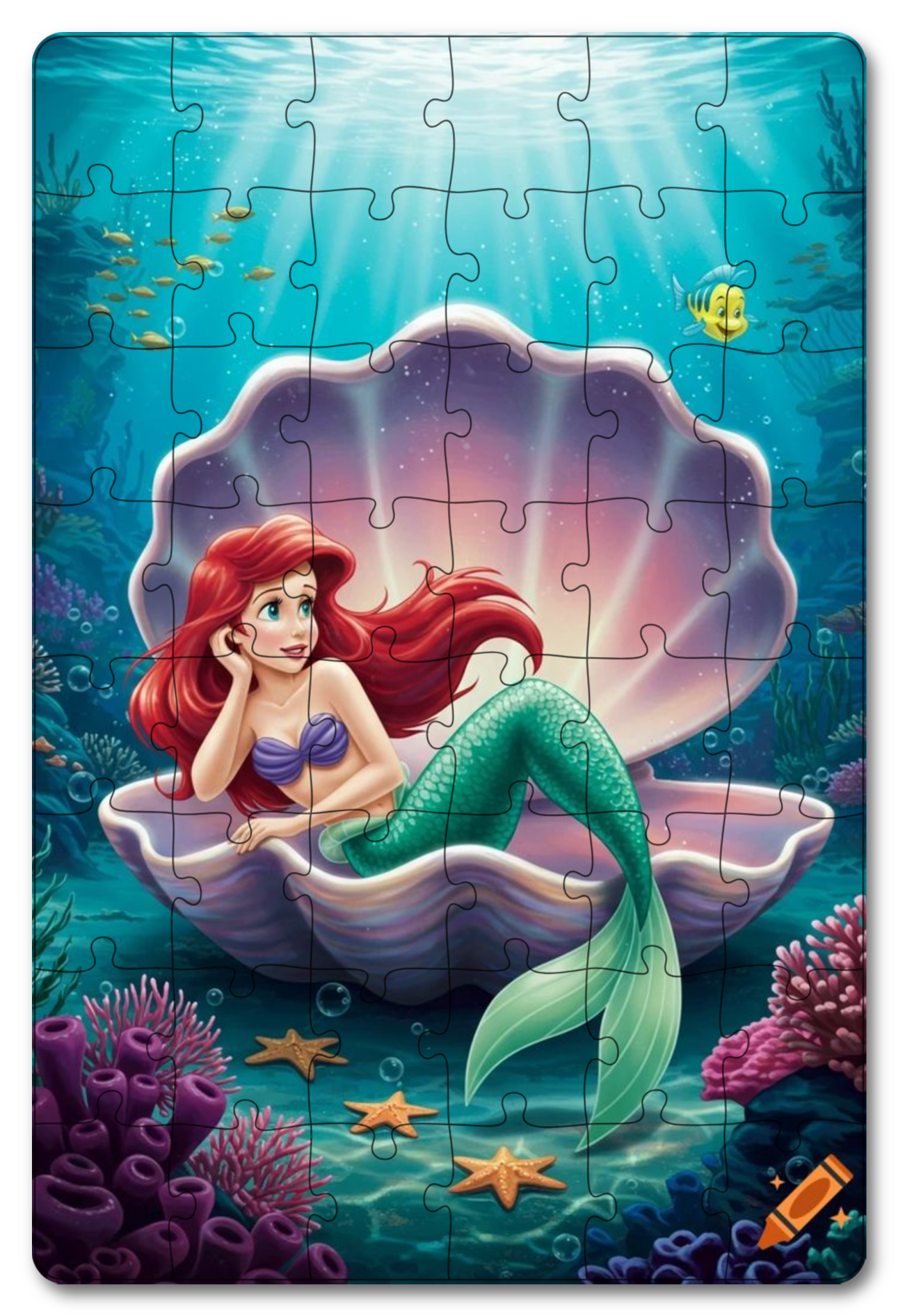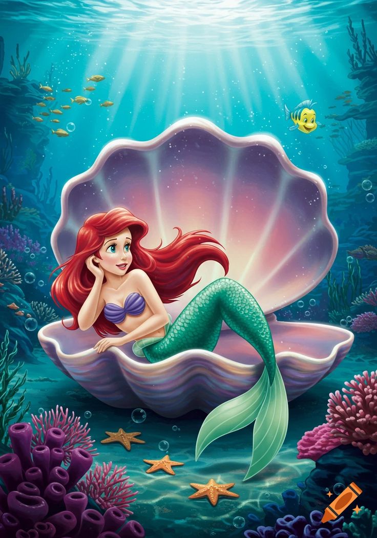 Një herë e një kohë në thellësitë e oqeanit, ndëndetësja Ariel po shihte rreth e rrotull. Ajo u ul në një gështenjë të madhe me ngjyra të çara dhe po kërkonte aventurë. Dhe papritur, ajo pa shokun e saj të vogël, Flounder, që po luante me disa yje deti.